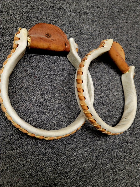 Rawhide covered HEAVY Iron Oxbow Stirrups